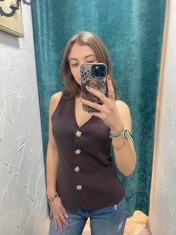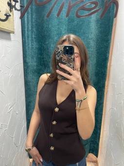 CHALECO BEIGE BOTONES...