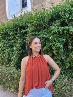 BLUSA NARANJA PIEDRAS CUELLO